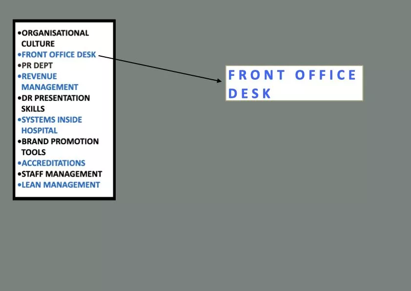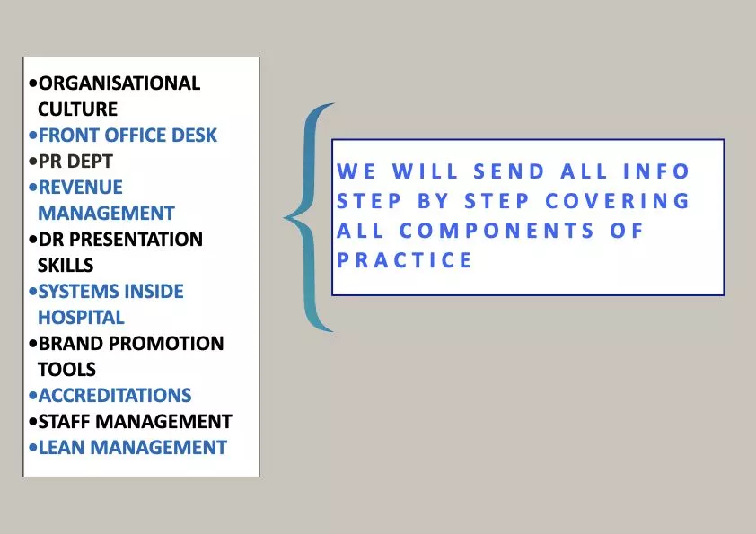 - We will send a very detailed presentation about each component of practice in PPTs covering each topic is & we will tell as to how to embed this in your hospital/clinic